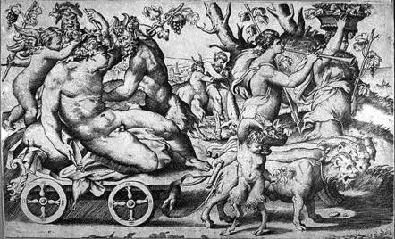 Bacchanal med Bacchus, Silenus, satyrer m.fl.